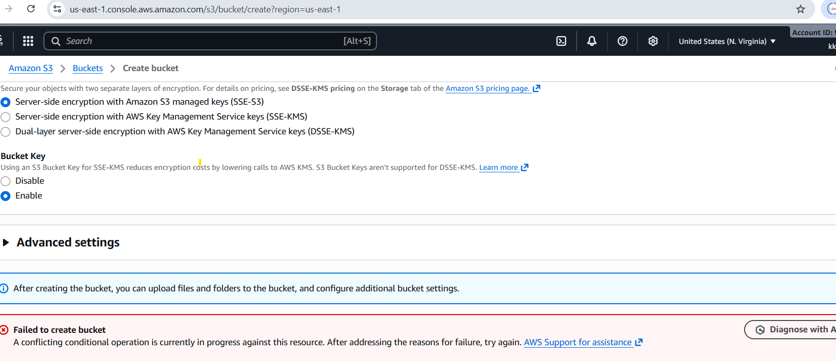 NOT ABLE TO CREATE BUCKET IN n.verginia