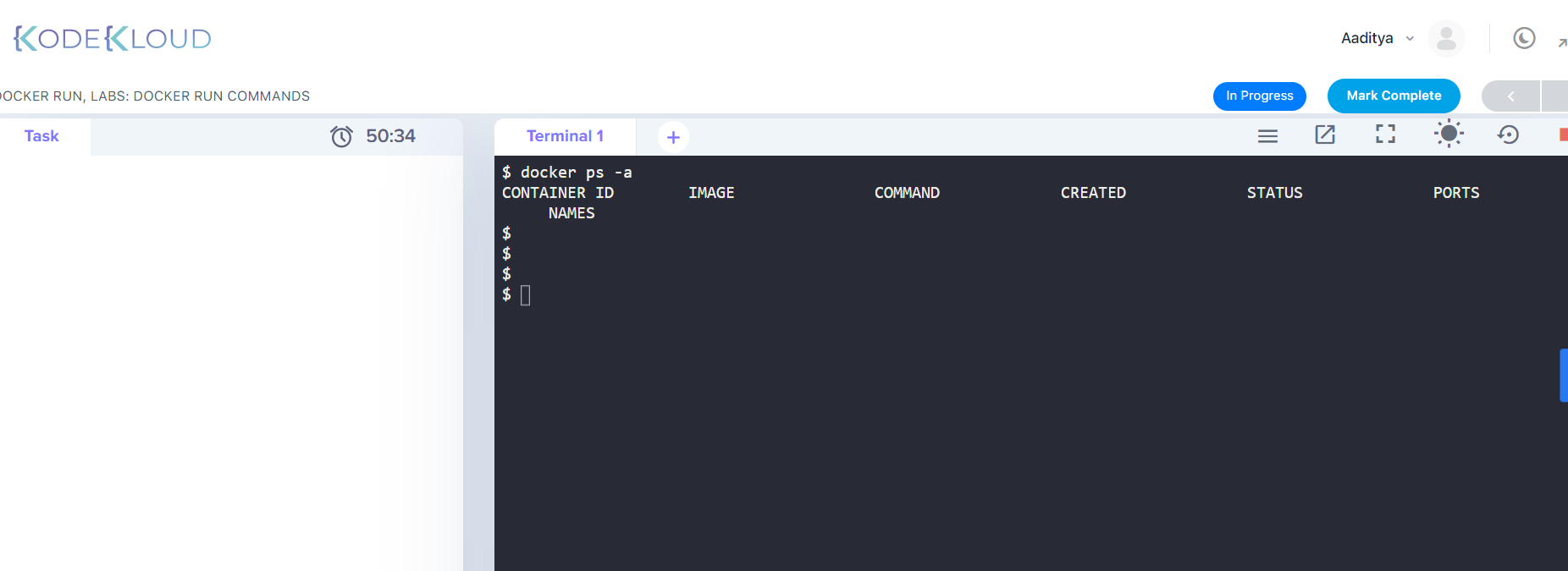 I am not able to see any task given during the docker run LAB . Please assist asap.