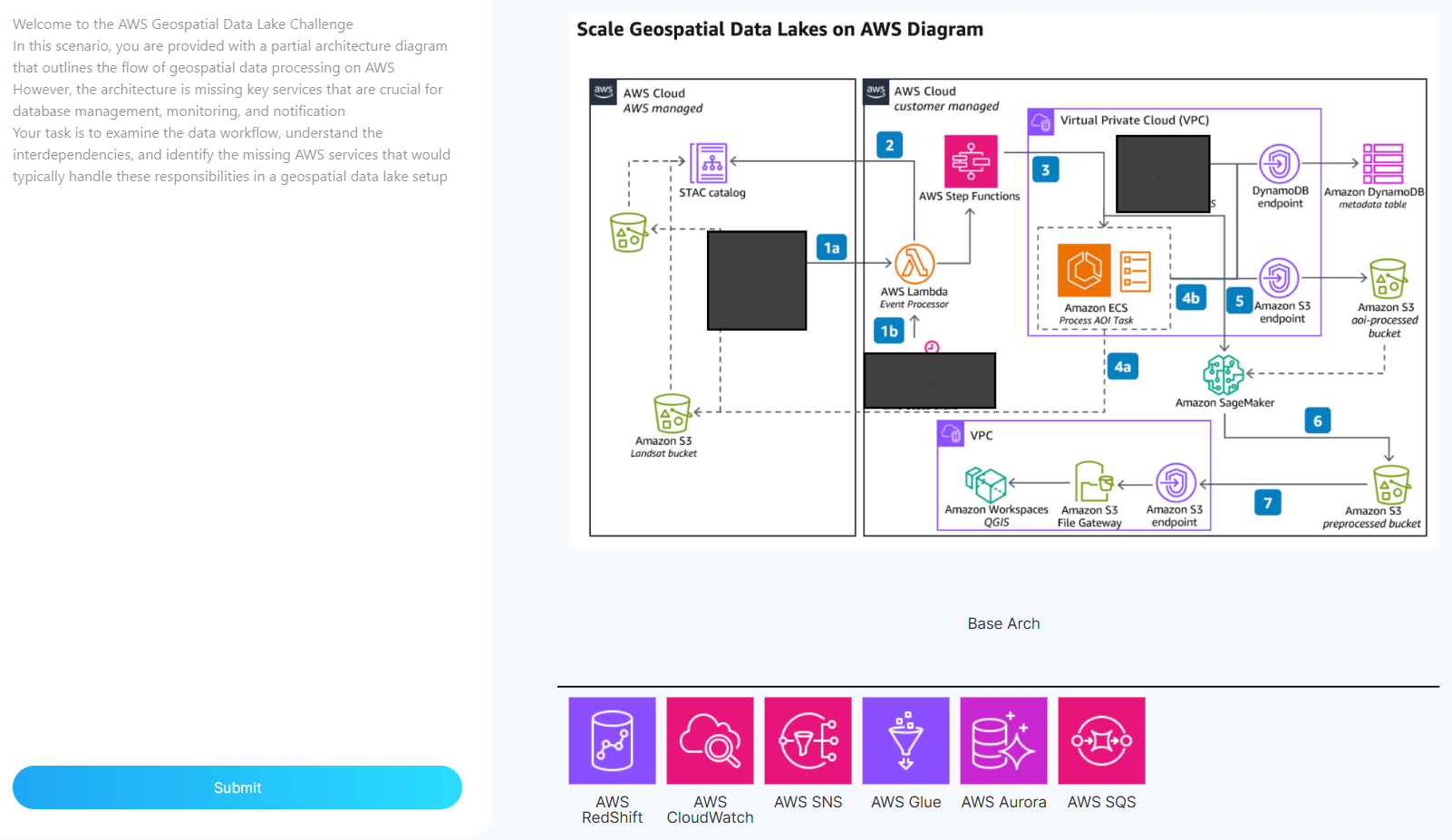 1a: AWS Aurora - Seems database management related, can also trigger Lambda functions, and transactional related looking at the STAC catalog.