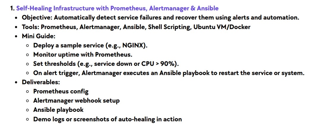 I’m doing an internship. And today i got a task to create a self healing infrastructure with prometheus, ansible, alertmanager.As I didn’t covered these topics so i used chatgpt to help me with this task.