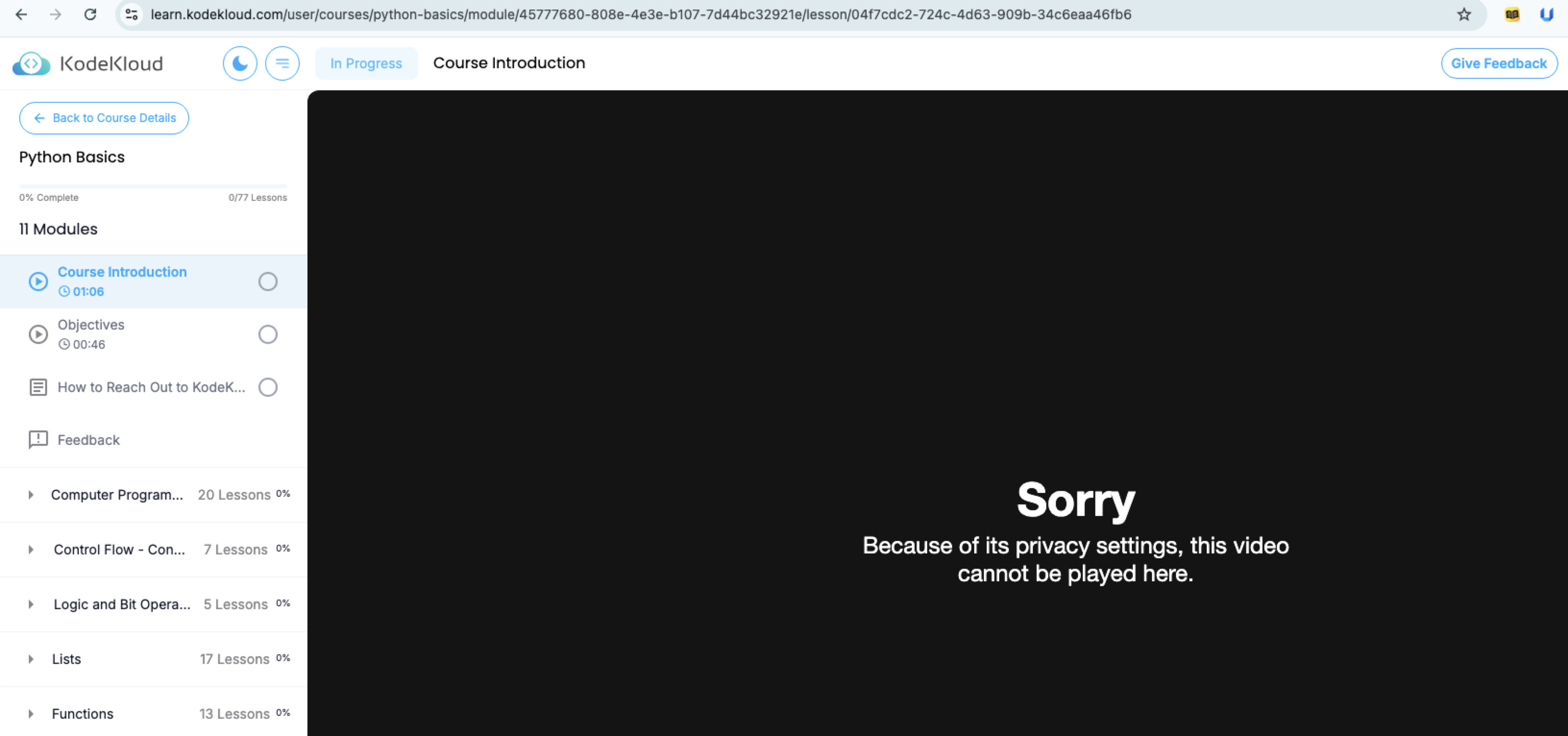 It worked in incognito mode. It seems the video plays when I disable Bitdefender antivirus. I’m not sure why the videos don’t play when Bitdefender is enabled—other platforms like Udemy and Pluralsight work fine. What specific privacy setting could be preventing the video from playing?