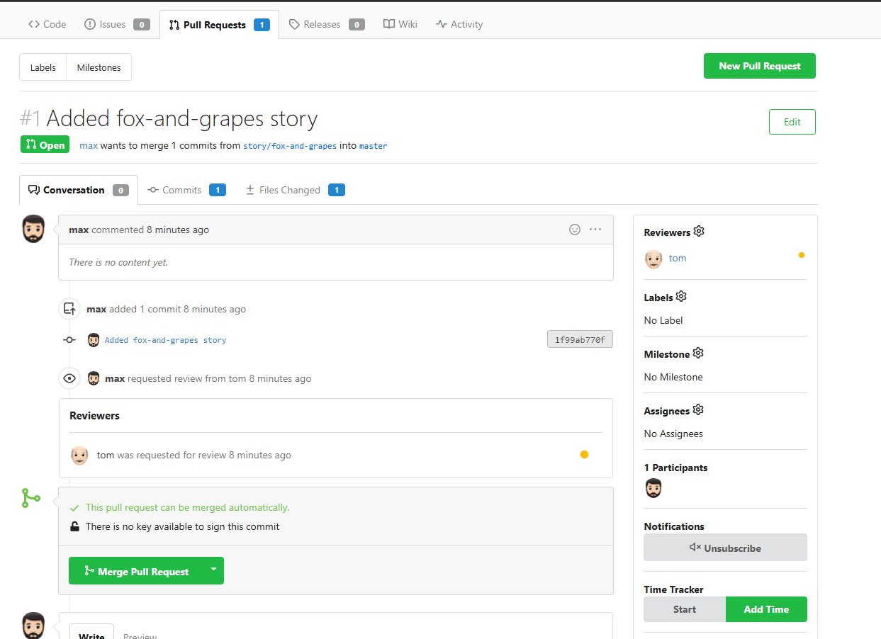 I am working on task 29 of the 100-day challenge, As part of the question we are requested to raise PR from Max’s account and raise PR adding Tom as reviewer. But when I login into Tom’s account I am not seeing any PR’s. Below are the screenshots for the same.