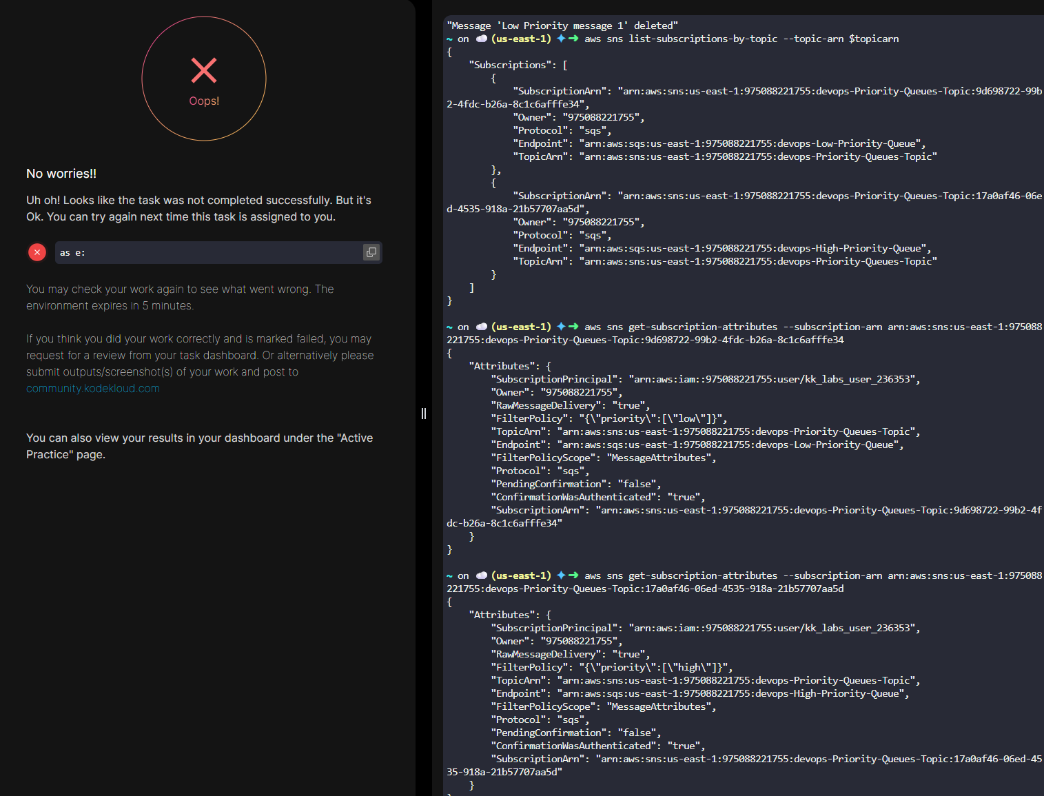 Low-Priority Queue Subscription to SNS