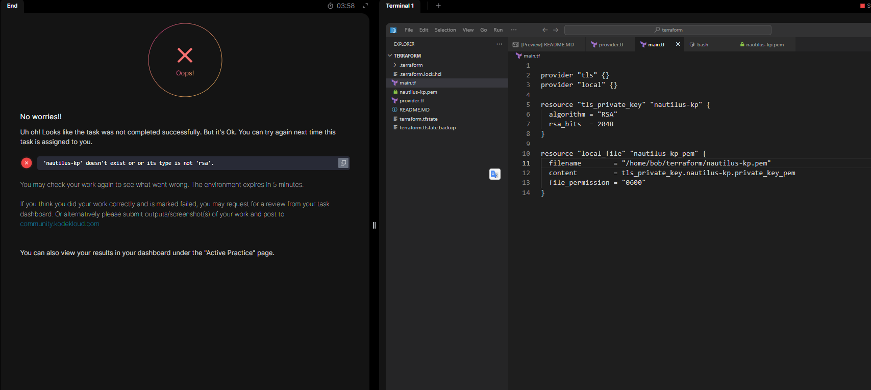 Hey Everyone, I am constantly getting error for the 1st day task of creating a key pair. Though through terraform key is being created. Can anyone please help.