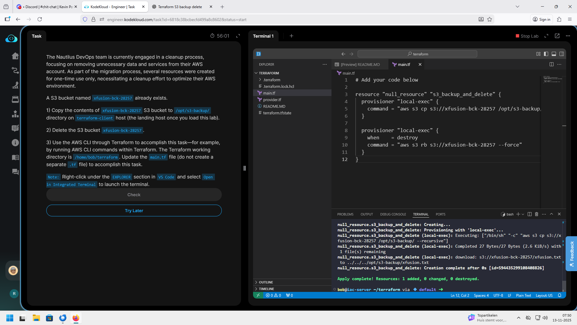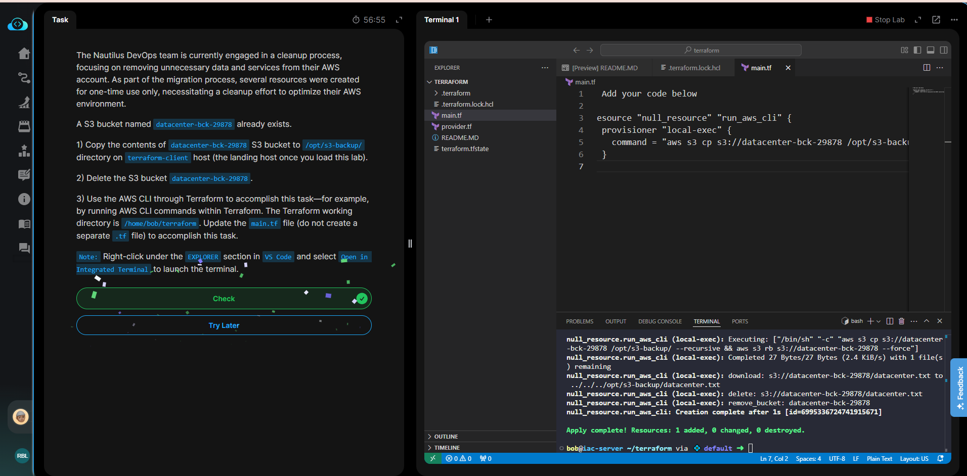 command = "aws s3 cp s3://datacenter-bck-29878 /opt/s3-backup/ --recursive && aws s3 rb s3://datacenter-bck-29878 --force"