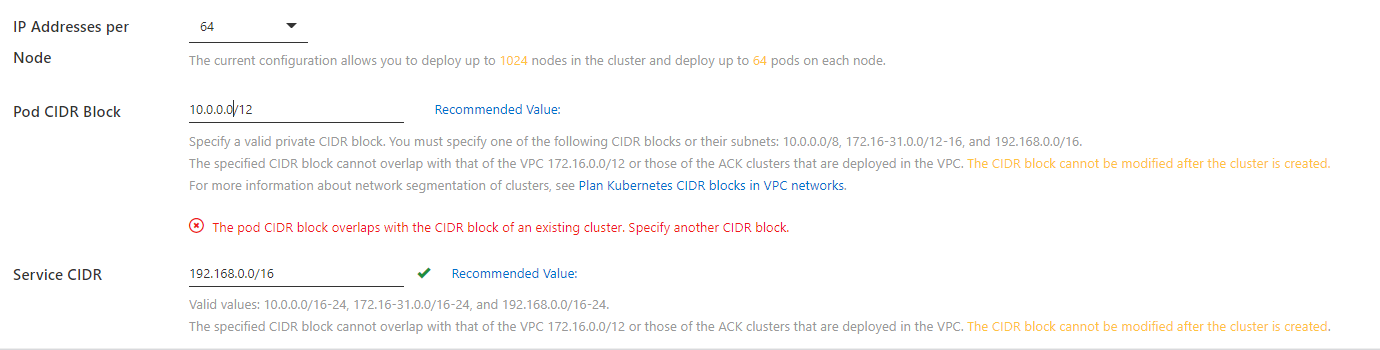 but when i put pod cidr block 10.0.0/12 it says its overlapping.previously i have used its default 10.0.0.0/8 but now its creating issue.can any one please help me in this regard.