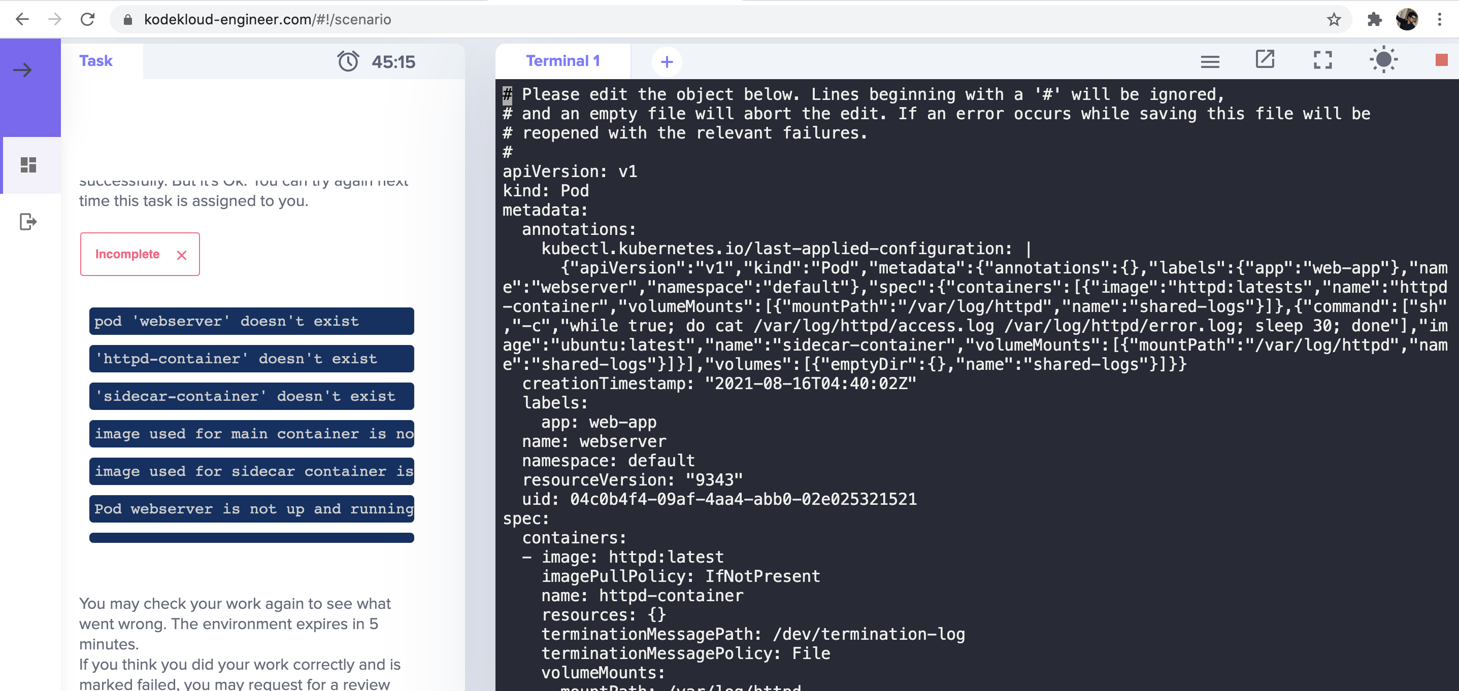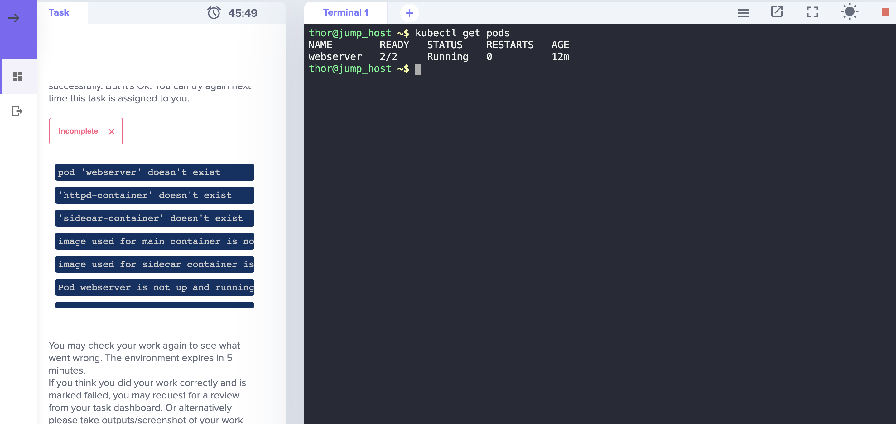 I’ve been assigned a task named “Troubleshoot Issue With Pods”