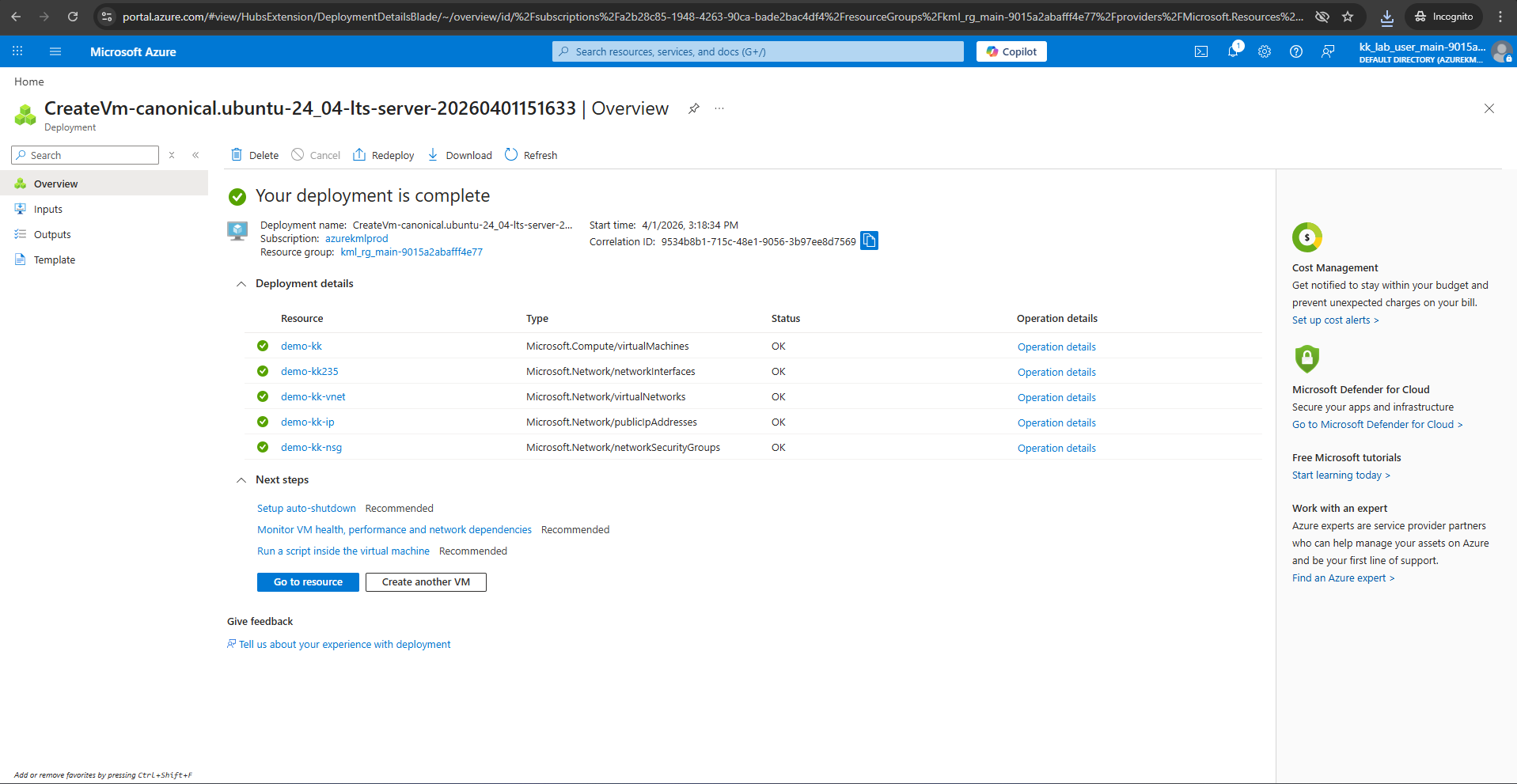 “target”: “/subscriptions/a2b28c85-1948-4263-90ca-bade2bac4df4/resourceGroups/kml_rg_main-e55e2d915c4e4753/providers/Microsoft.Resources/deployments/CreateVm-canonical.ubuntu-24_04-lts-server-20260316095212”,