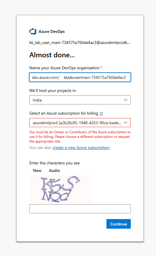 Azure DevOps is not a supported service on Azure Playgrounds.