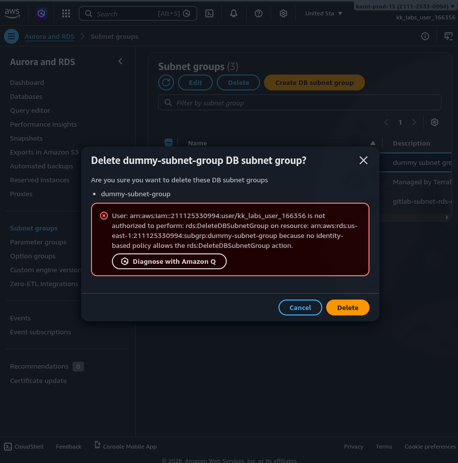 I noticed that we’re unable to delete RDS subnet groups, even though they are not associated with any databases.
