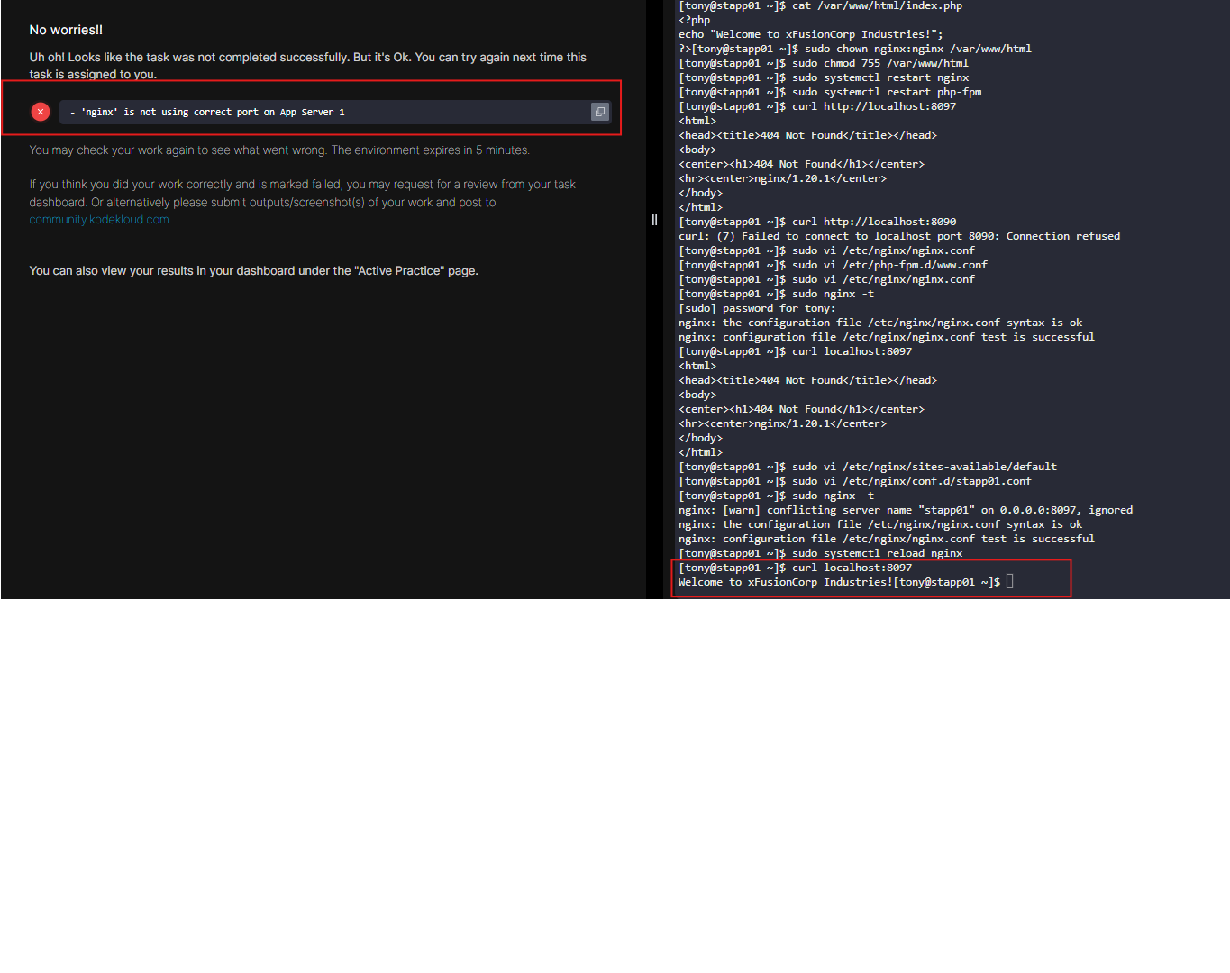 Seems there’s a bug with the Day 20 challenge test. I keep getting this error that my nginx is not using the correct port, and I am sure it is…can anyone help out please?
