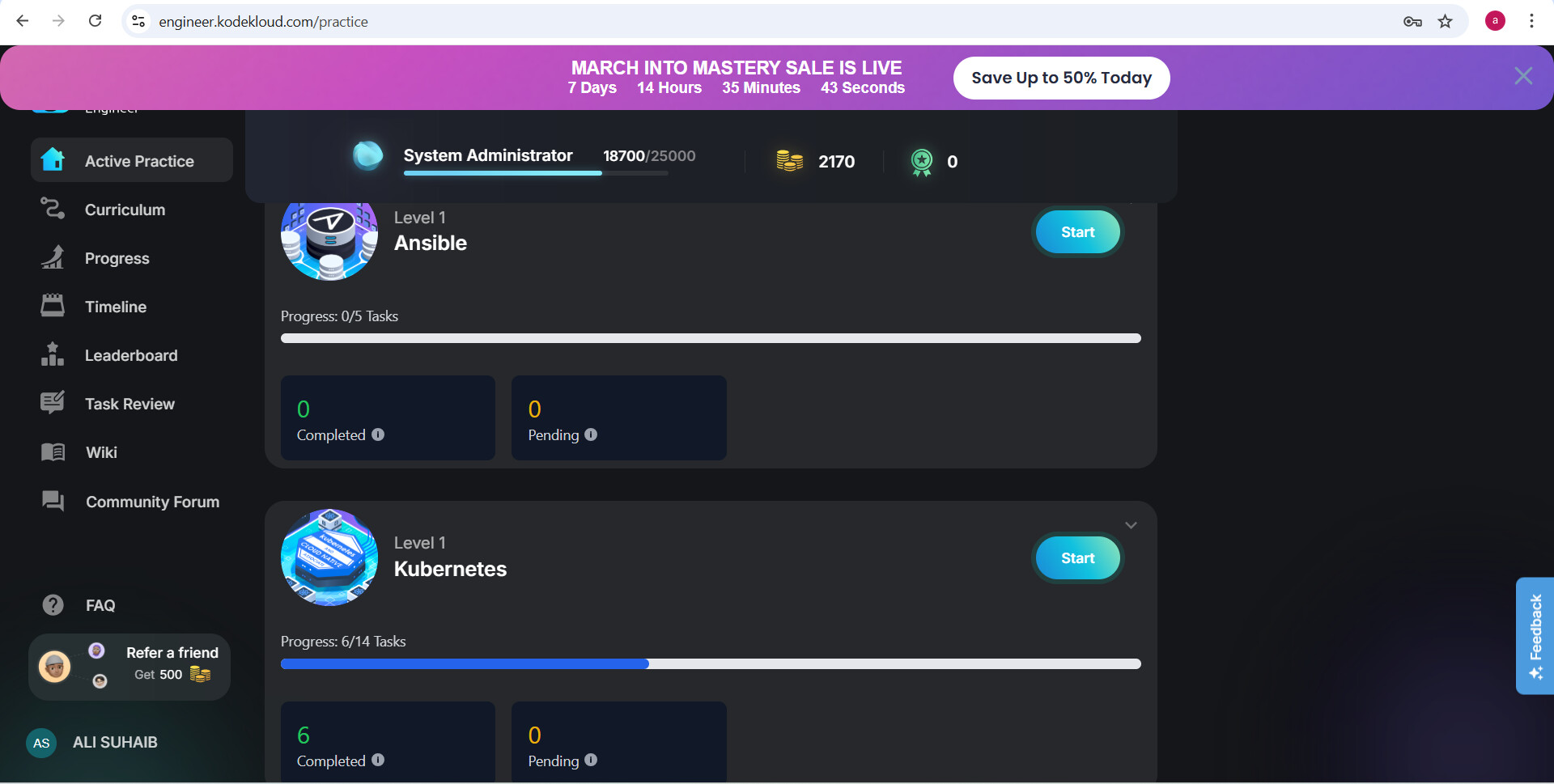 I am currently practicing in the Engineer section on KodeKloud.