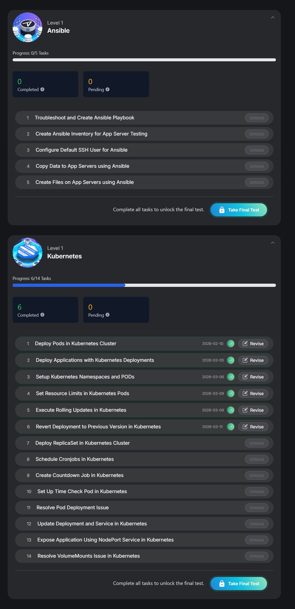 However, I noticed that in Ansible Level 1 , it still shows 0 tasks unlocked , and no task is available to start. As per the unlock logic, I expected at least 1 task to be available .