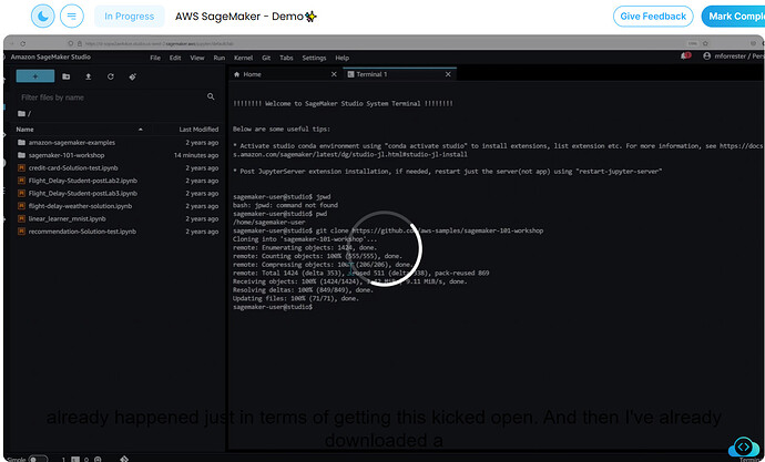 which AWS sagemaker workshop did he downloaded IN AWS Cloud Practitioner ( CLF -02) ,Technical part 3, AWS Sagemaker Demo, Time = 01:20 min