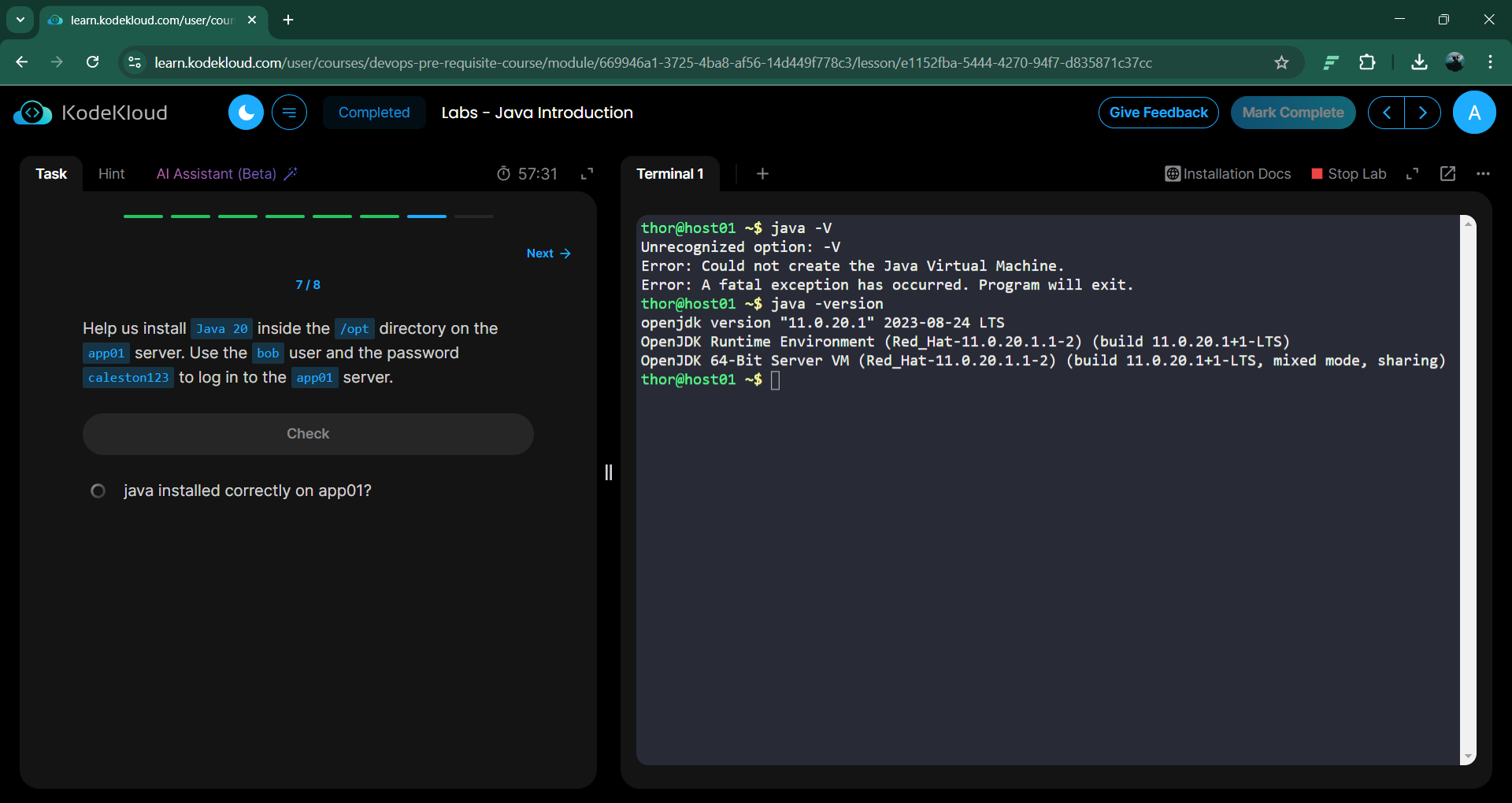 - If you do see thor@jumphost, you’re in the right place, and if you type “exit” in this context, you will terminate your lab. DON’T DO THAT.