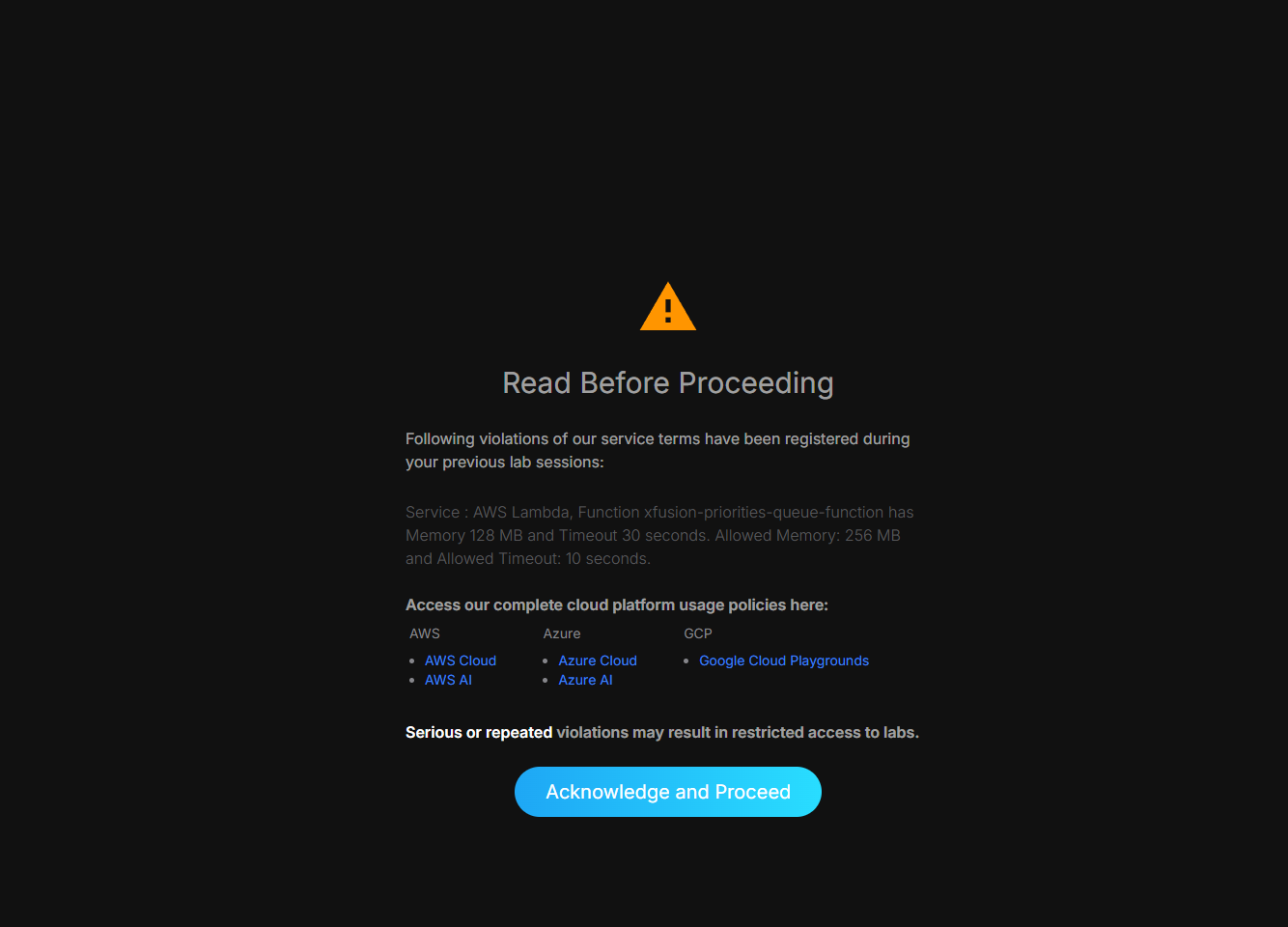 Were you doing a lab when you got this message? If so, please provide a link to the lab.