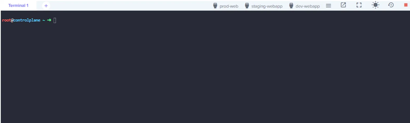 2. The bottom half of the interface contains the terminal to the Kubernetes controlplane which you would use to complete the tasks.